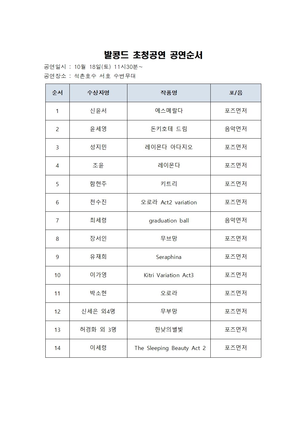 ☆참여자 전원 공연당일 안내데스크에서 프로그램 참여확인 서명 必★